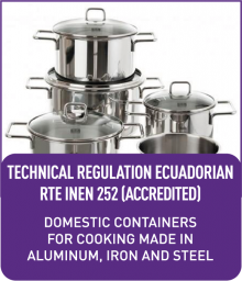 Establishes the safety and energy efficiency requirements for household cooking containers made of cast iron and steel; and, the safety requirements that must be met by containers for domestic use for cooking made of aluminum established in the technical regulations and in the standards established for each classification: